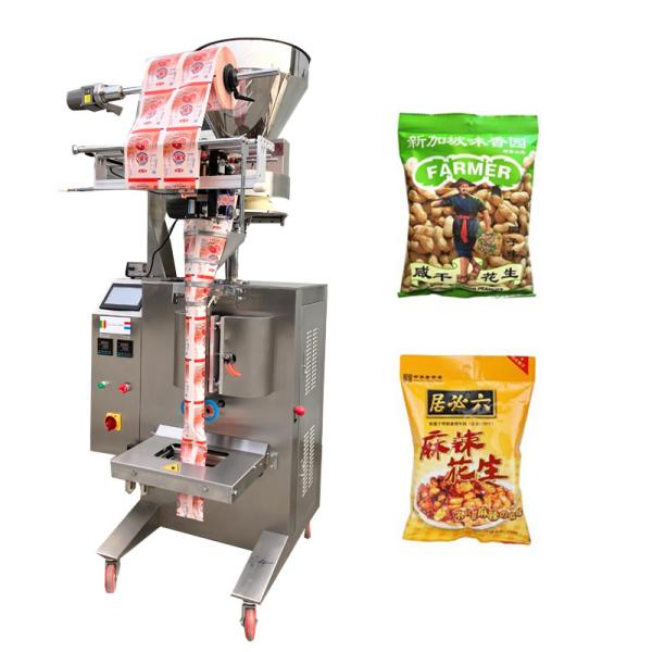 This machine is widely used to pack granular materials, such as rice, peanuts, grains, sugar, coffee, salt, flavouring, sunflower seeds, nuts, tea, herbs, beans, etc.